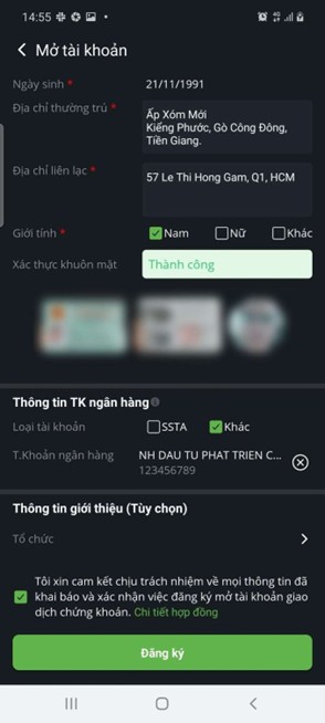 – Email: Hệ thống sẽ gửi email hợp đồng mở tài khoản