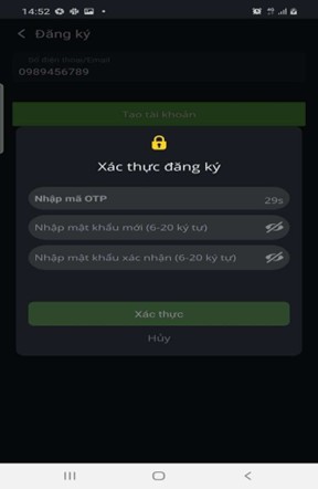 Hệ thống sẽ gửi mã OTP về số điện thoại hoặc email đã đăng ký