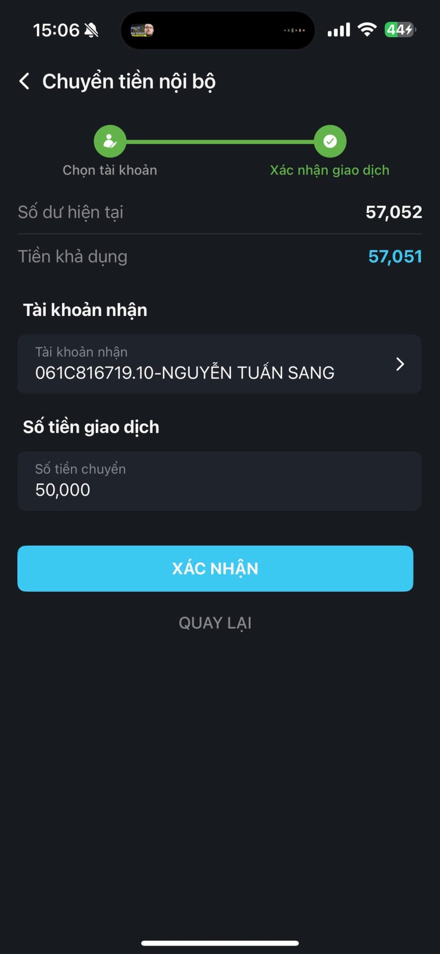 Bước 1: Khách hàng đăng nhập vào App GTJAs, chọn “CHUYỂN TIỀN NỘI BỘ”