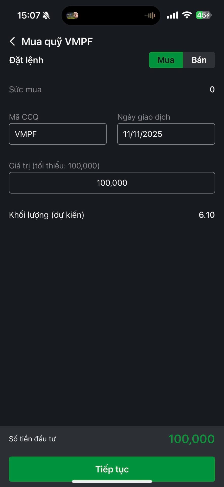 Bước 7: Nhập số tiền muốn mua, chọn TIẾP TỤC