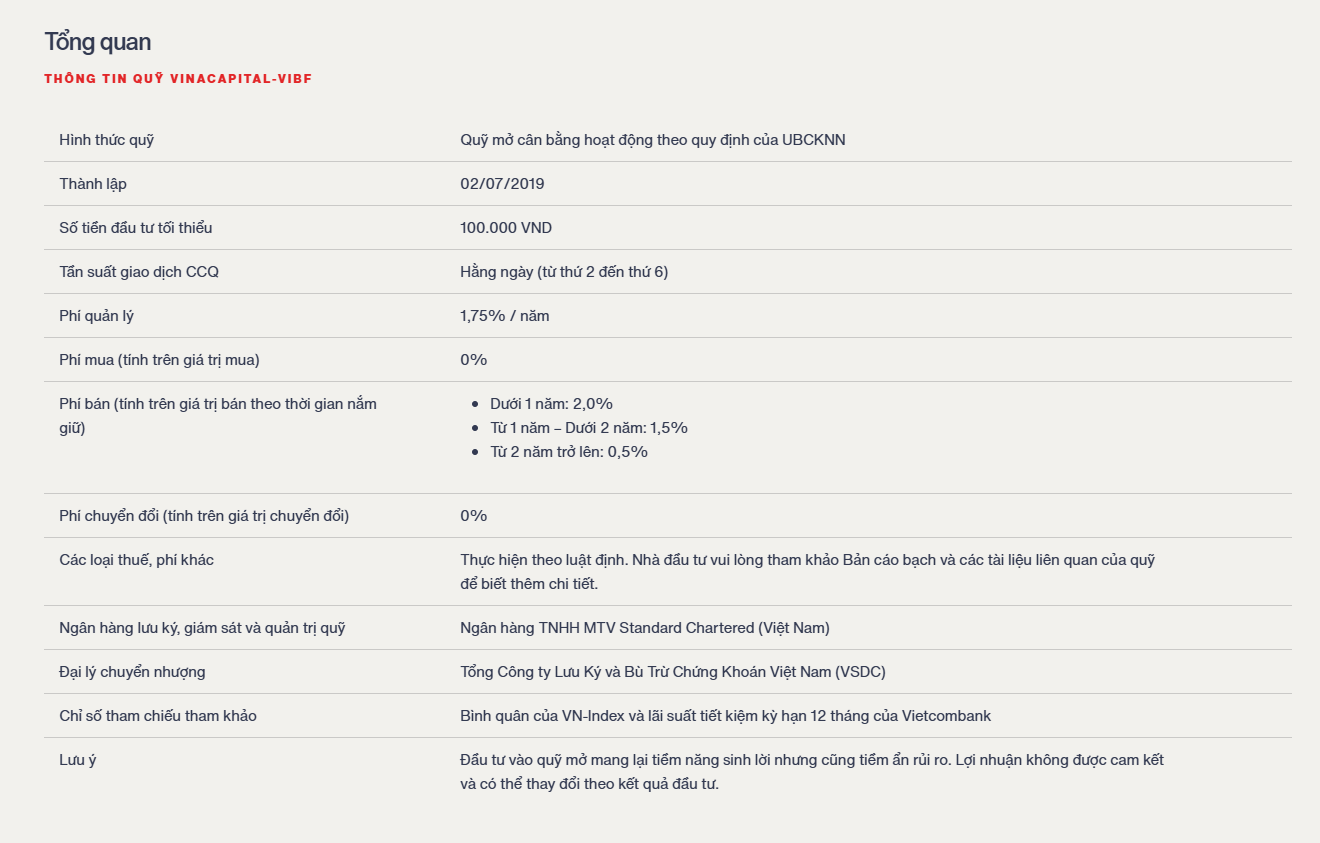 VINACAPITAL-VIBF là quỹ mở cân bằng được quản lý chuyên nghiệp bởi VinaCapital, phân phối bởi Guotai Junan (Vietnam) Securities.