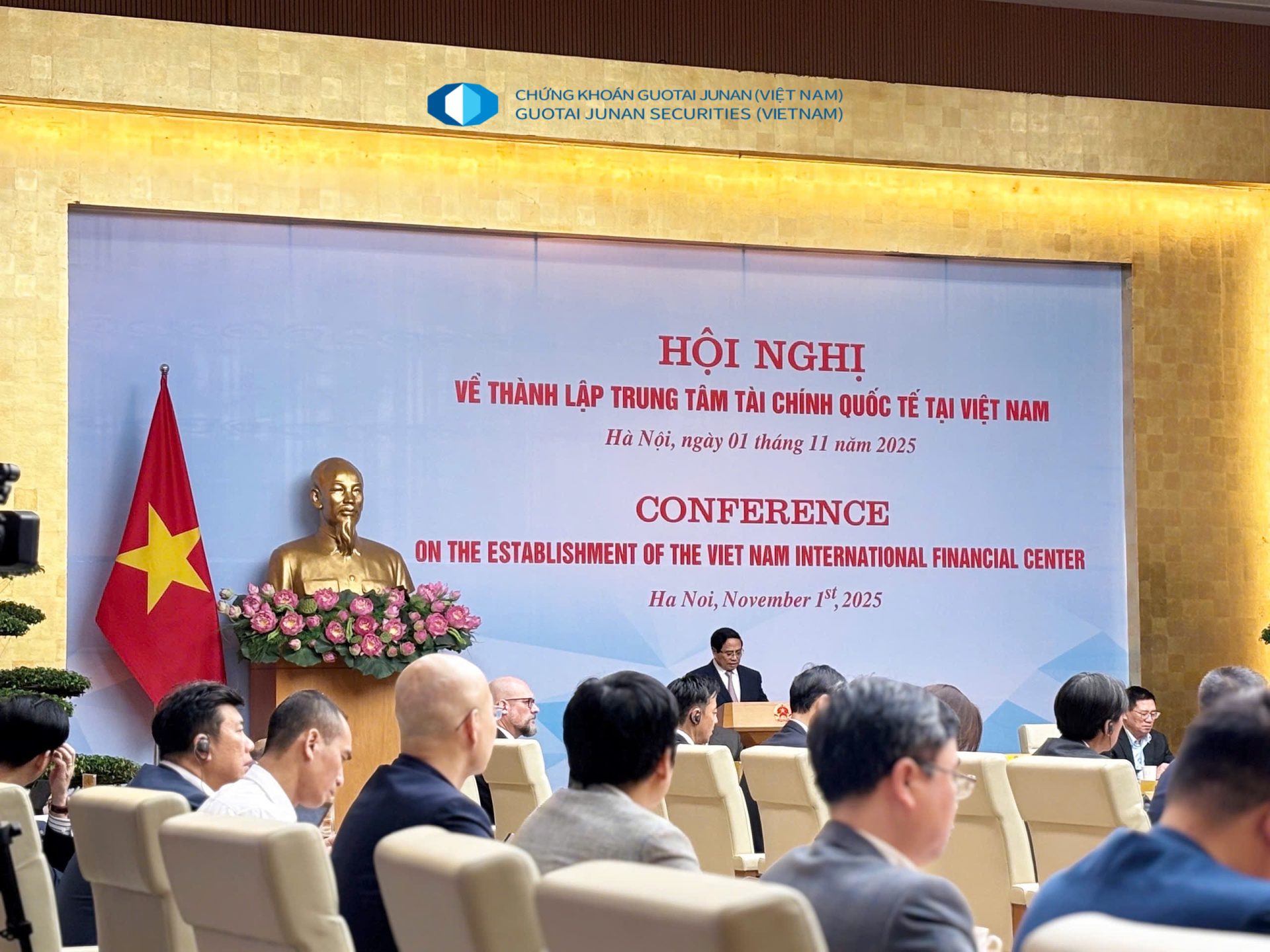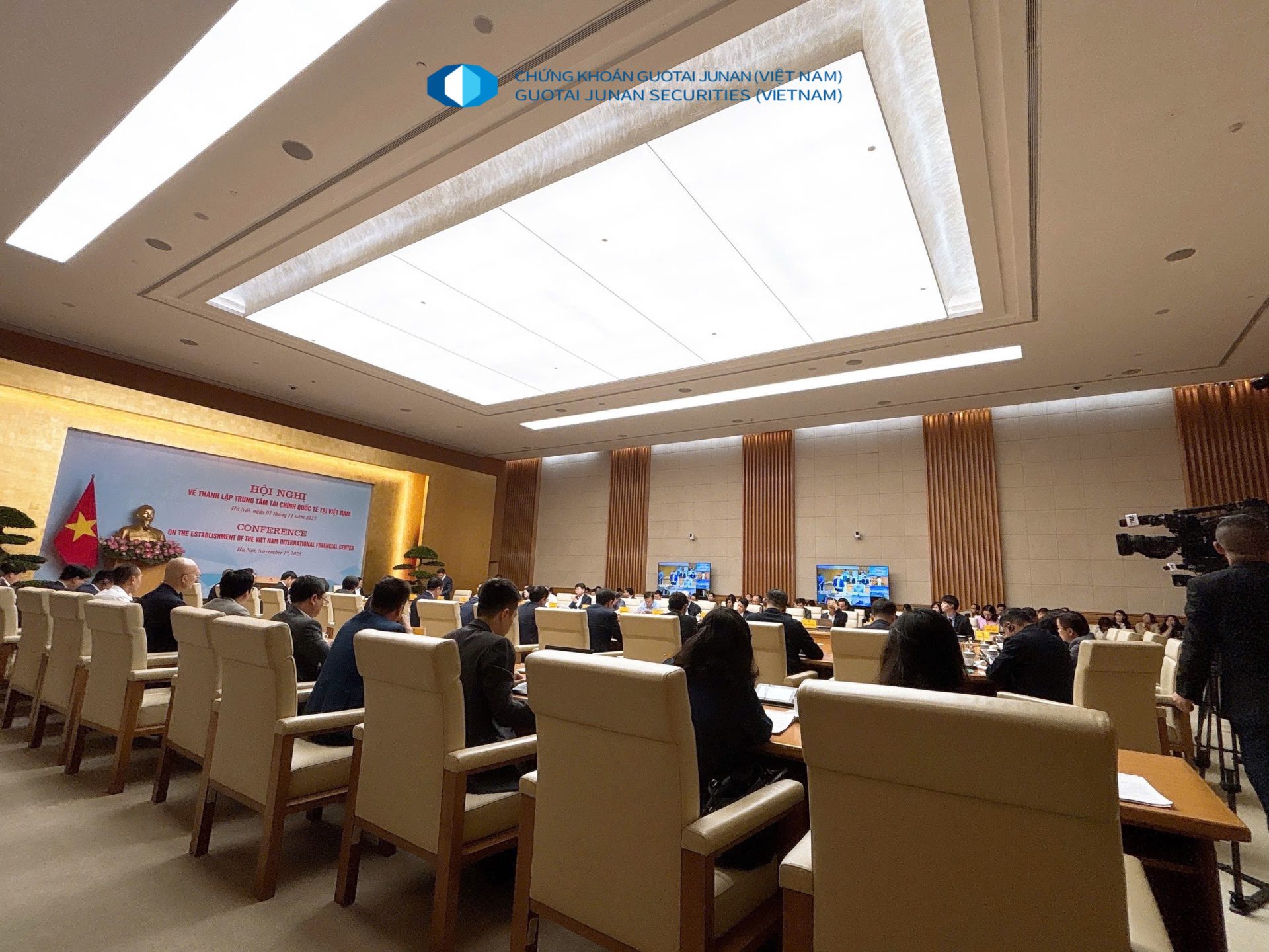 Ngày 01/11/2025, Tổng Giám đốc Công ty Chứng khoán Guotai Junan (Việt Nam) đã tham dự Hội nghị về thành lập Trung tâm Tài chính Quốc tế tại Việt Nam, do Bộ Tài chính phối hợp với Văn phòng Chính phủ tổ chức tại trụ sở Văn phòng Chính phủ.