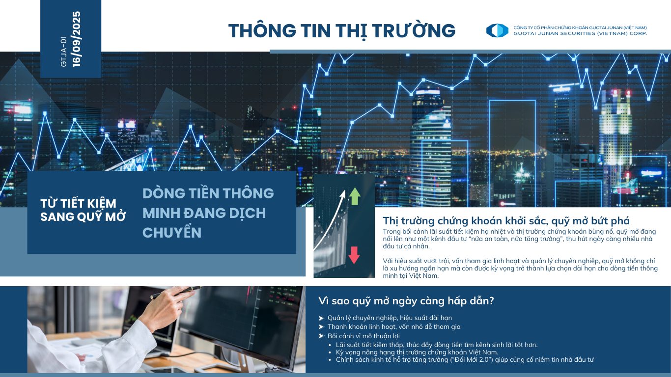 GTJA – Trong bối cảnh lãi suất tiết kiệm hạ nhiệt và thị trường chứng khoán bùng nổ, quỹ mở đang nổi lên như một kênh đầu tư “vừa an toàn, vừa tăng trưởng”, thu hút ngày càng nhiều nhà đầu tư cá nhân. Với hiệu suất vượt trội, vốn tham gia linh hoạt và quản lý chuyên nghiệp, quỹ mở không chỉ là xu hướng ngắn hạn mà còn được kỳ vọng trở thành lựa chọn dài hạn cho dòng tiền thông minh tại Việt Nam.